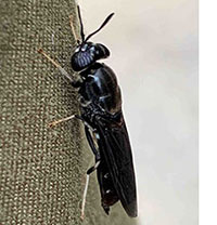 2.昆虫を使った資源循環食資源の循環に関する問題は、人間が一方的に消費し続ける物質の流れに起因しています。自然界においては、野生動物が残した食べ物のゴミが山積することはなく、昆虫や微生物といった「分解者」によって自然に還されます。一般的に分解者としてはミミズが思い浮かぶかもしれませんが、最も強力な分解者の一つが雑食性のハエです。その中でも特に注目を集めているのが、アメリカミズアブ(学名:Hermetia illucens、英語名:Black Soldier Fly、以下「ミズアブ」と記述)です(図1)。ミズアブの幼虫は、食品残渣(生ゴミ)を餌にして成長し、良質なタンパク質や脂質を蓄えると同時に、有機肥料への物質変換(付加価値化)を可能にする生物です2)。この点で、近年話題の昆虫食に利用されるコオロギやカイコとは異なる性質を持っています。ミズアブが特に優れているのは、食性の広さと高密度飼育の容易さにあります。すなわち、さまざまな種類の廃棄物を処理できるだけでなく、大量生産が可能であることから、工業的なスケールアップや低コストでの飼育が実現しやすいのです。この点が、食品廃棄物の処理技術としてミズアブが注目される理由です。次章では、ミズアブの生物学的特徴やその生産物の利用方法について、さらに詳しく解説します。