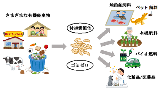 ![]() 図3 アメリカミズアブを用いた有機廃棄物リサイクル