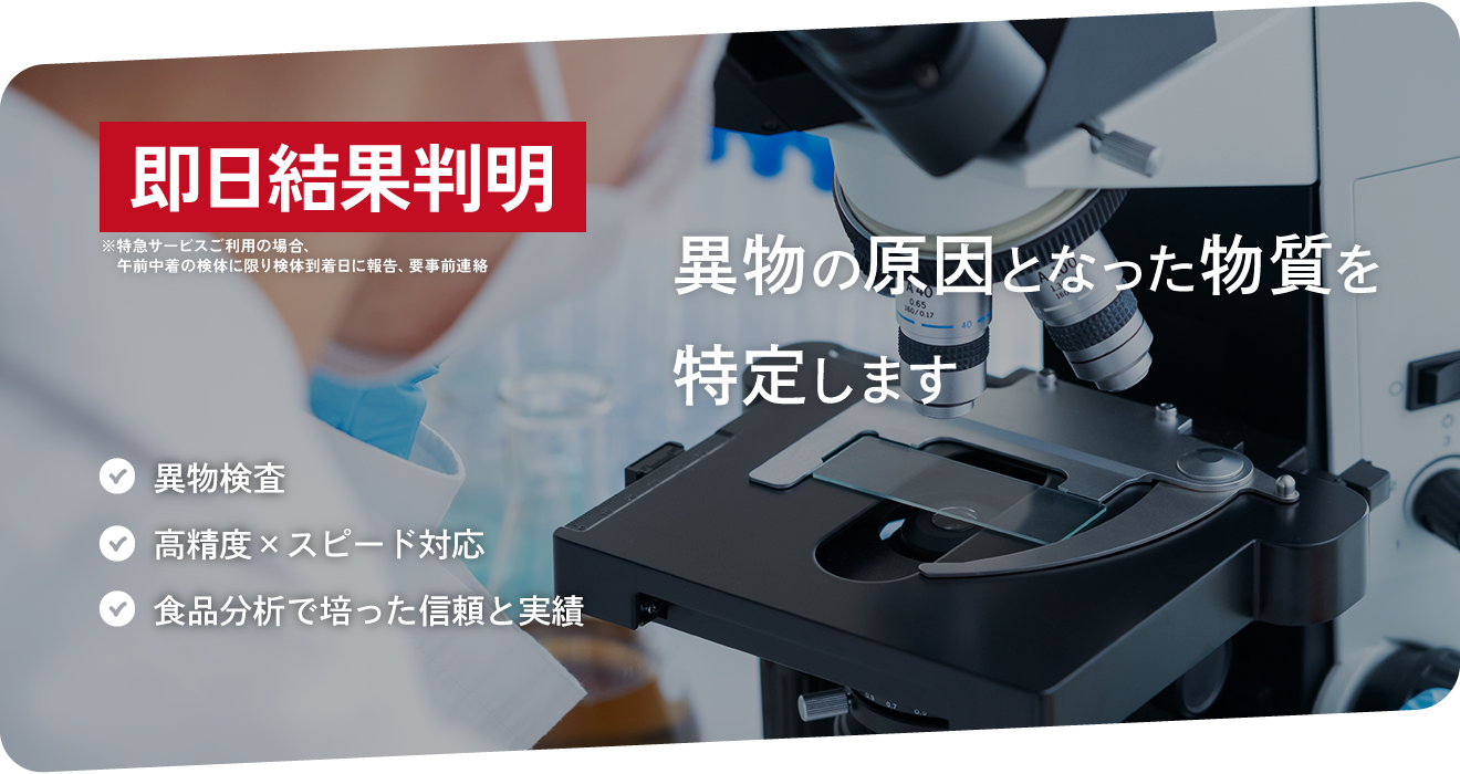 異物検査の特急サービスは、急ぎで結果が必要な方に最適です。